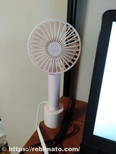しかし暑さには耐えられず、しかもこのハンディファン結構軽いし、USBで充電できるので電気代もかからないし。モバイルバッテリーでも充電できる。