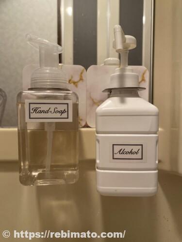 今までハンドソープとアルコールを置いていた場所に、別の置きたいものを置けるようになりました。