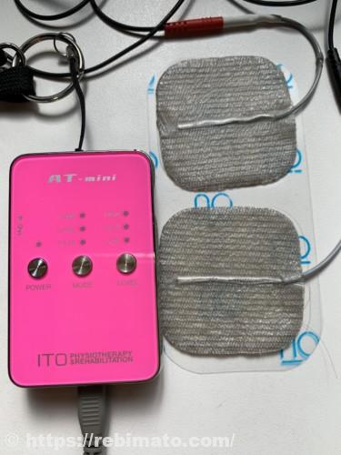 競技においても疲労が残ってしまうことは、結果にも影響を与えてしまうので、食事やケアなどの他に何か解決方法がないものかと、色々調べて、少し値段は高いかなと感じましたが「低周波治療器 ATミニ AT-mini」を購入しました。