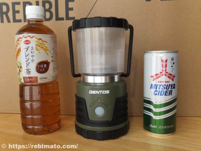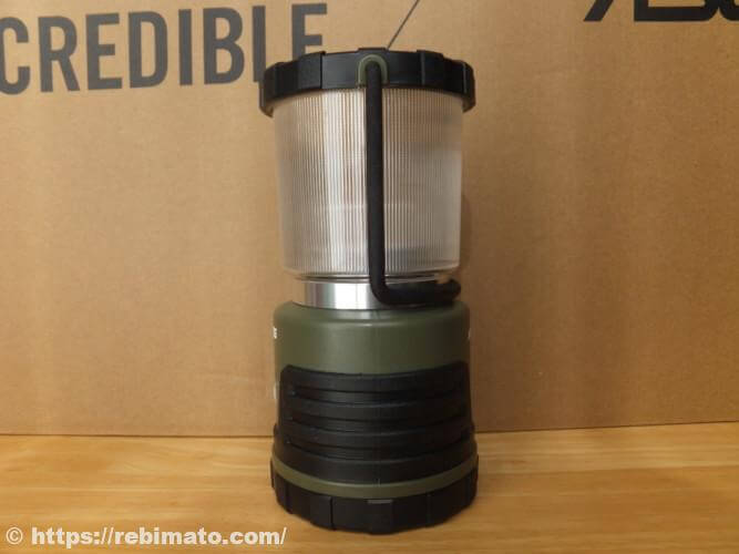 高さはペットボトルのキャップ部分を除いた高さとほぼ同じです。EX-700RCという250lmのLEDランタンとほぼ同じ大きさなので、1000lmのランタンとしてはサイズ的が小さいほうなのではないかと思います。