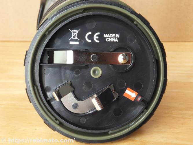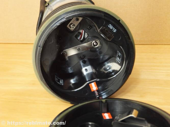 ふたを開けると単1電池を入れるスペースがあります。ふたを閉めるときは、ふたと本体内部の矢印シールの凹凸をかみ合わせるようにして回す必要があるため若干面倒ですが、慣れると簡単にできます。シール部分を合わせた後、ふたを軽く押し付けるようにして回すといい感じにできます。