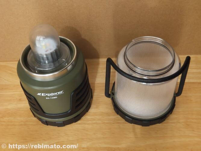 カバー内部カバー内部には凹凸のついた反射板が内蔵されています。ランタン下向きに光が拡散されるのではなく、若干上方向に光が拡散される特徴があります。