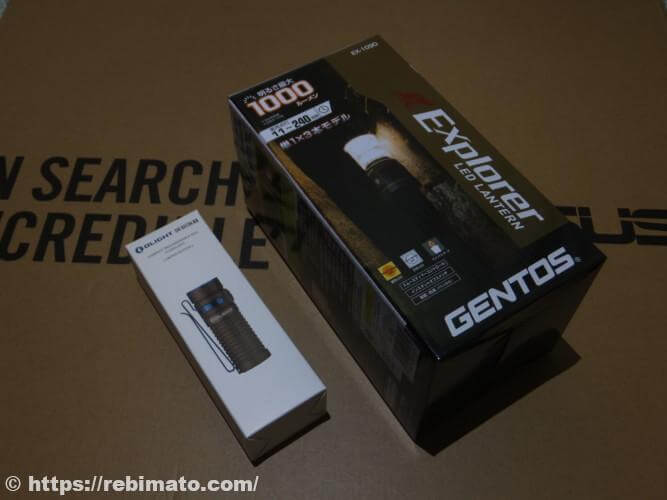 中国メーカーの低価格な製品もありますが、ランタンのような長時間点灯する可能性がある製品では品質が怪しい製品に手を出すのは気が引けます。しかし、Amazonでランタンを探していると、GENTOS社のEX-109という製品が最大1000lmで値段も3000円ちょっととお手頃なものだったため、試しに購入してみました。
