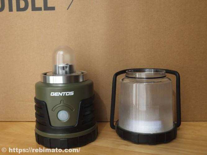 上のカバーは外すことができ、電球のような状態で使用することも可能です。以前のGENTOSの製品からある構造です。
