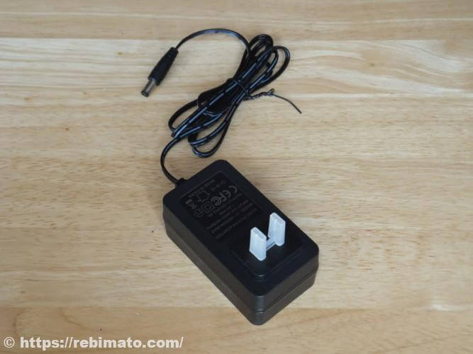ACアダプターは出力が19V2Aのものです。出力端子は普通のDCプラグであったため、19Vの汎用ACアダプターでプラグのサイズが合えば代替品として使えそうです。