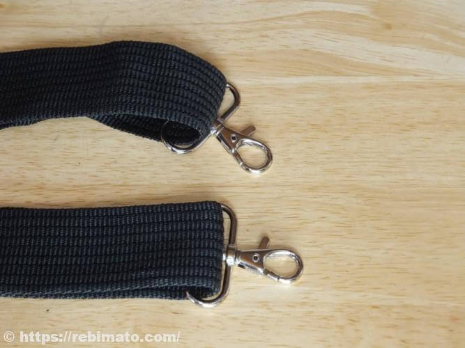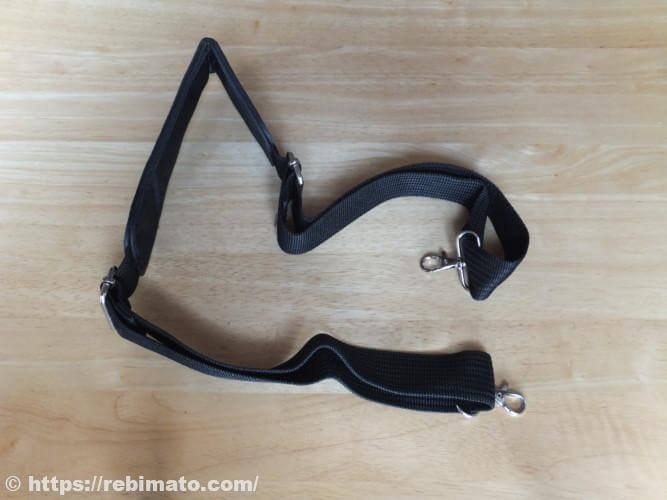 ショルダーベルトはIMALENTロゴ付きでほつれなどもないしっかりしたものです。本体ヘッドとテール部のストラップホールにつなげることで肩掛けで使用できます。