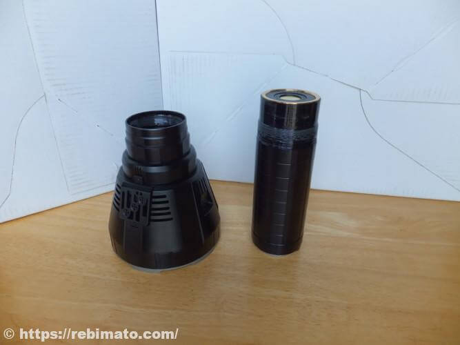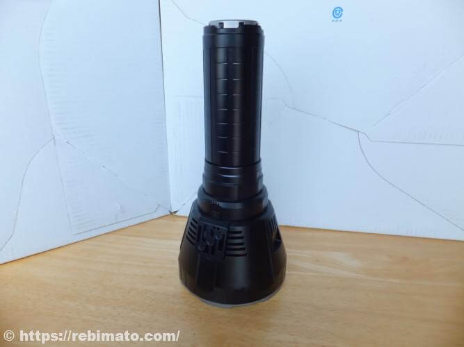 もちろんこれよりも大きいライトもあるのでしょうが、21700、26650、18650電池を使用するライトしか触れてこなかった私にとっては非常に大きく感じます。さすがに専用バッテリーを使用するようなライトは大型ですね。
