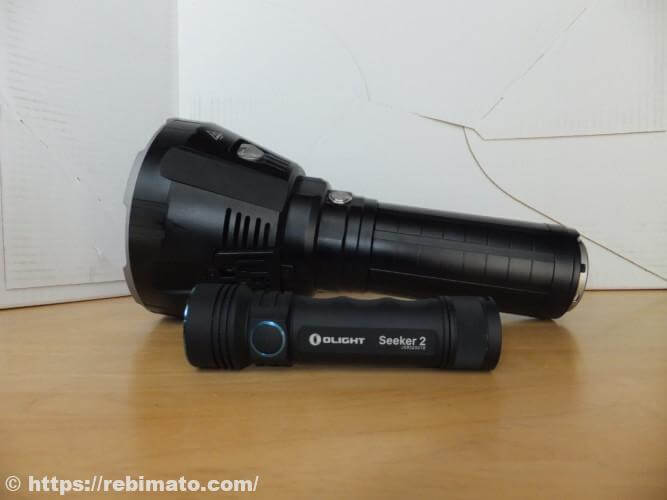 左がImalent DM70、右がOlight Seeker2 です。(写真撮影時の立ち位置が若干変わっているため、参考程度に見ていただければと思います。)