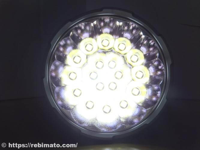 直径が13cmほどあり、一般人は確実に驚愕すると思います。さらに搭載されているLEDが多いので、ライトを点灯しなくとも正面から見るだけで圧倒されます。