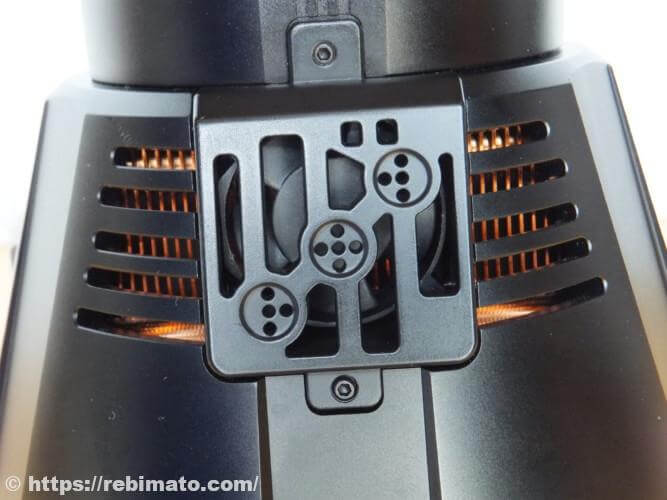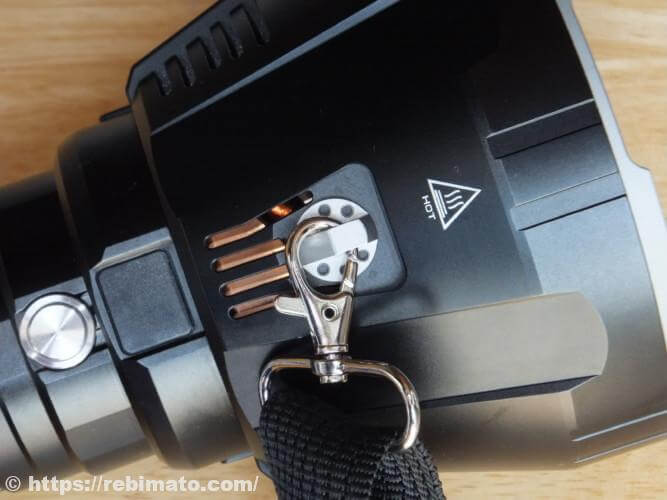 ヒートパイプも直径1cmくらいありそうです。放熱口から見えるヒートシンクから、このライトは金属製のボディに放熱を任せるのではなく、冷却用のファンとヒートシンクを駆使して放熱しているのがわかります。