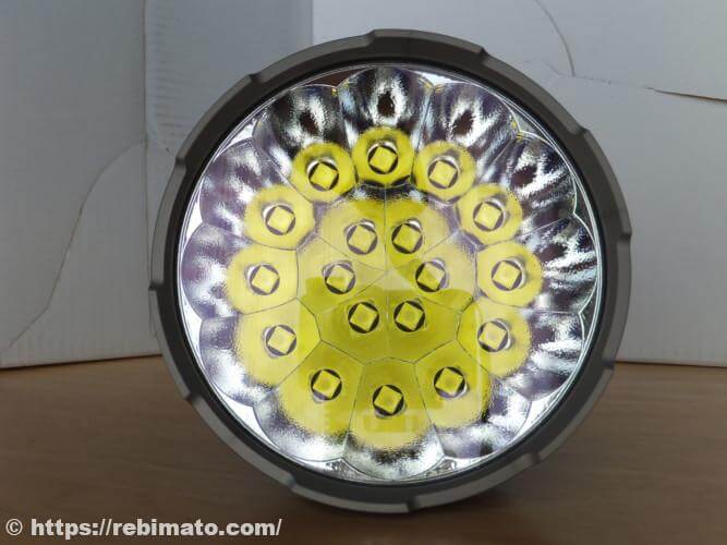 直径が13cmほどあり、一般人は確実に驚愕すると思います。さらに搭載されているLEDが多いので、ライトを点灯しなくとも正面から見るだけで圧倒されます。