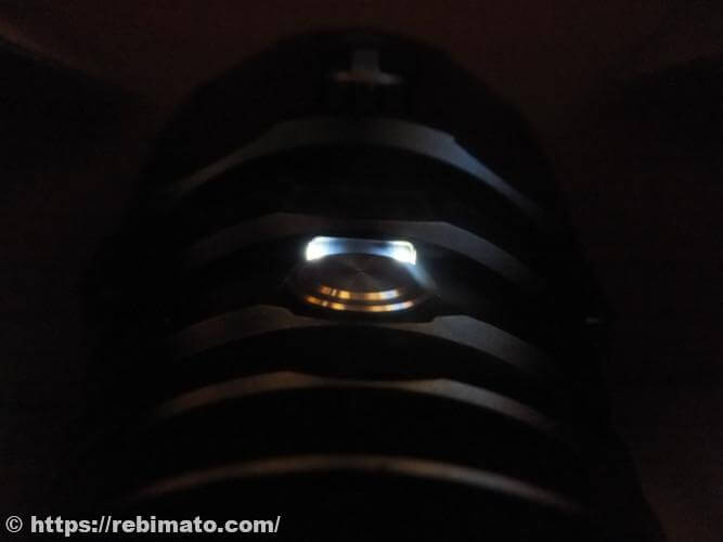 また、大抵の10000lmほどの爆光ライトでは、ヘッド部分に放熱用のフィン(表面積を増やすためのギザギザ)がついていますが、このMS18にはフィンではなく、放熱用のスリットが開いているのに目新しさを感じました。