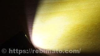 ヘッド部レンズにはTIRレンズが使われています。また、ハニカム状の模様がレンズに刻まれているので、光が拡散します。手元を照らすのに適した配光で、いろいろな用途に使えそうです。拡散するといっても、ある程度の集光性はあります。