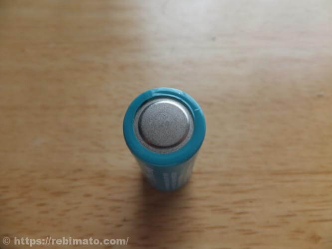 充電用端子テールキャップ底面には充電用の端子がついています。テールキャップの内側の端子が1つだけでないことが画像から分かります。また、前回レビューしたOlight Seeker 2のように、テールキャップ側を電池の+極とする必要があります。電池を外すことはほとんどないと思われますが、極性は間違えないようにしましょう。