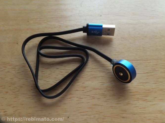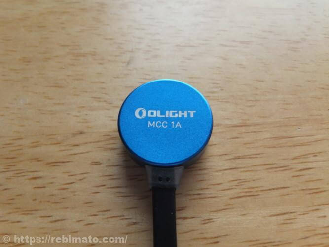 充電ケーブルはマグネット式のもので、LEDライトの底面に取り付けて充電するタイプのものです。前回レビューしたLEDライト「Seeker 2」に付属していたものと全く同じ充電ケーブルです。 マグネットはLEDライト本体にも内蔵されているようで、固定力は比較的は強めです。この充電ケーブルにはケーブル根元にLEDインジケータが内蔵されており、充電中は赤く点灯します。