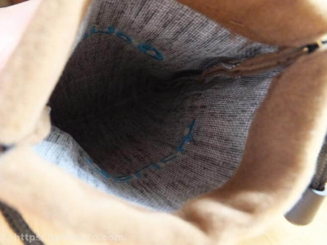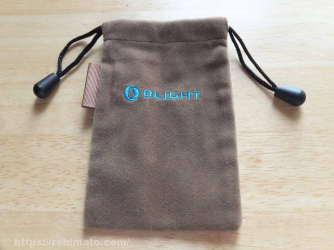 収納用ポーチは縦140mm、横90mmほどと大きめで、ライト本体だけでなく、バッテリーケースなどの付属品も一緒に収納することができます。外側は肌触りが良いように作られていますが、内部の見た目は付属品であるがゆえによろしくありません。
