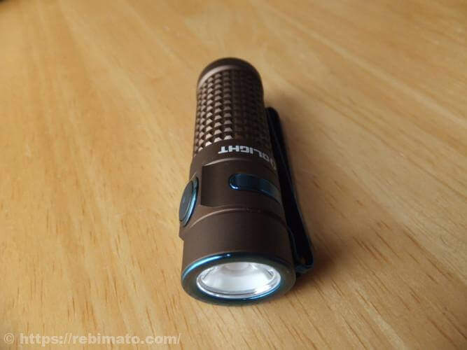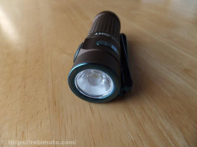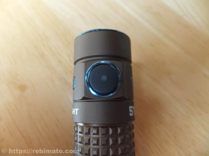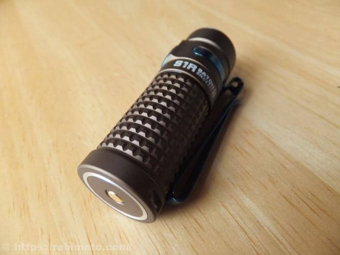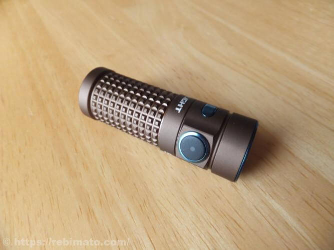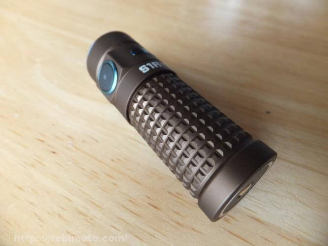 ボディは、粗目のローレット加工がなされており、ごつごつした感じが特徴ですね。ライト本体が手の中に隠せてしまうほど小さいので、このローレット加工は滑り止めよりもデザイン的な要素が強いのでしょう。