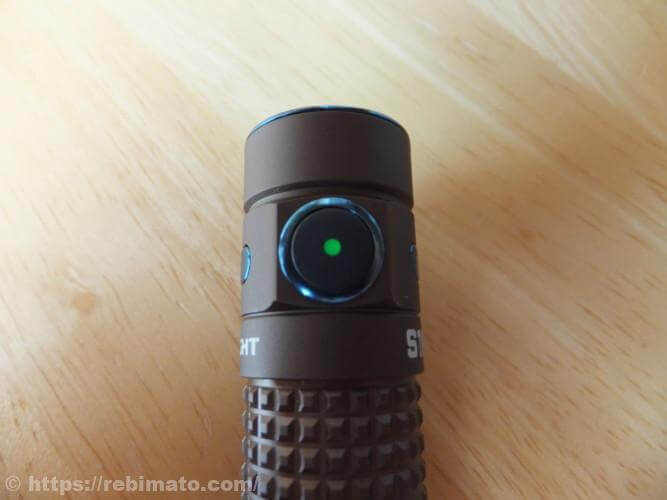 スイッチ中央にはLEDインジケータが内蔵されており、バッテリー残量によって赤、黄、緑に点灯します。