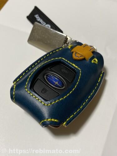 SUBARUスマートキーにぴったりで、定番ですが、黒革に青ステッチで凄く気に入ってます!(^^)! 裏面には、IMPREZAと自分の名前を入れて貰いました。